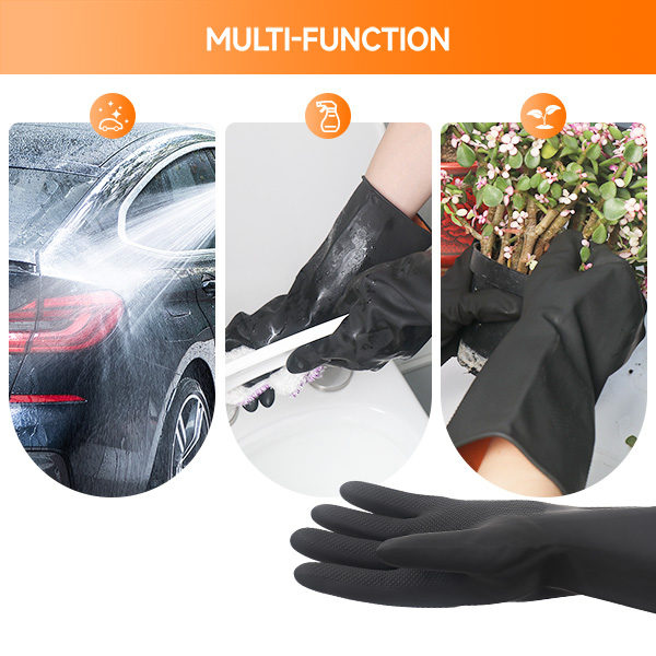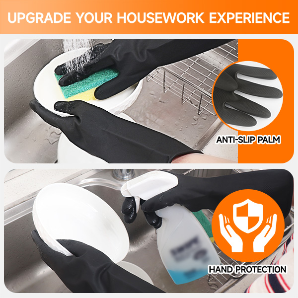 MULTIPLE USES: These rubber cleaning gloves are essential cleaning tools suitable for a variety of tasks. You can use these large dishwashing gloves for kitchen cleaning, as well as for cleaning the bathroom, maintaining the swimming pool, washing cars, and other cleaning tasks.