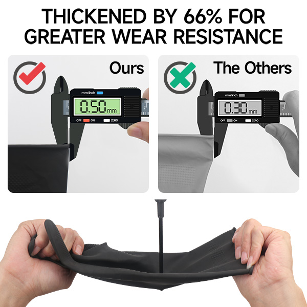 THICK AND COMFORTABLE: These black rubber gloves, made from high-quality rubber, are perfect for tackling tough cleaning tasks in the kitchen with their thick and heavy-duty design. When you use these rubber dishwashing gloves, they are comfortable for your hands and do not cause any harm to the skin.