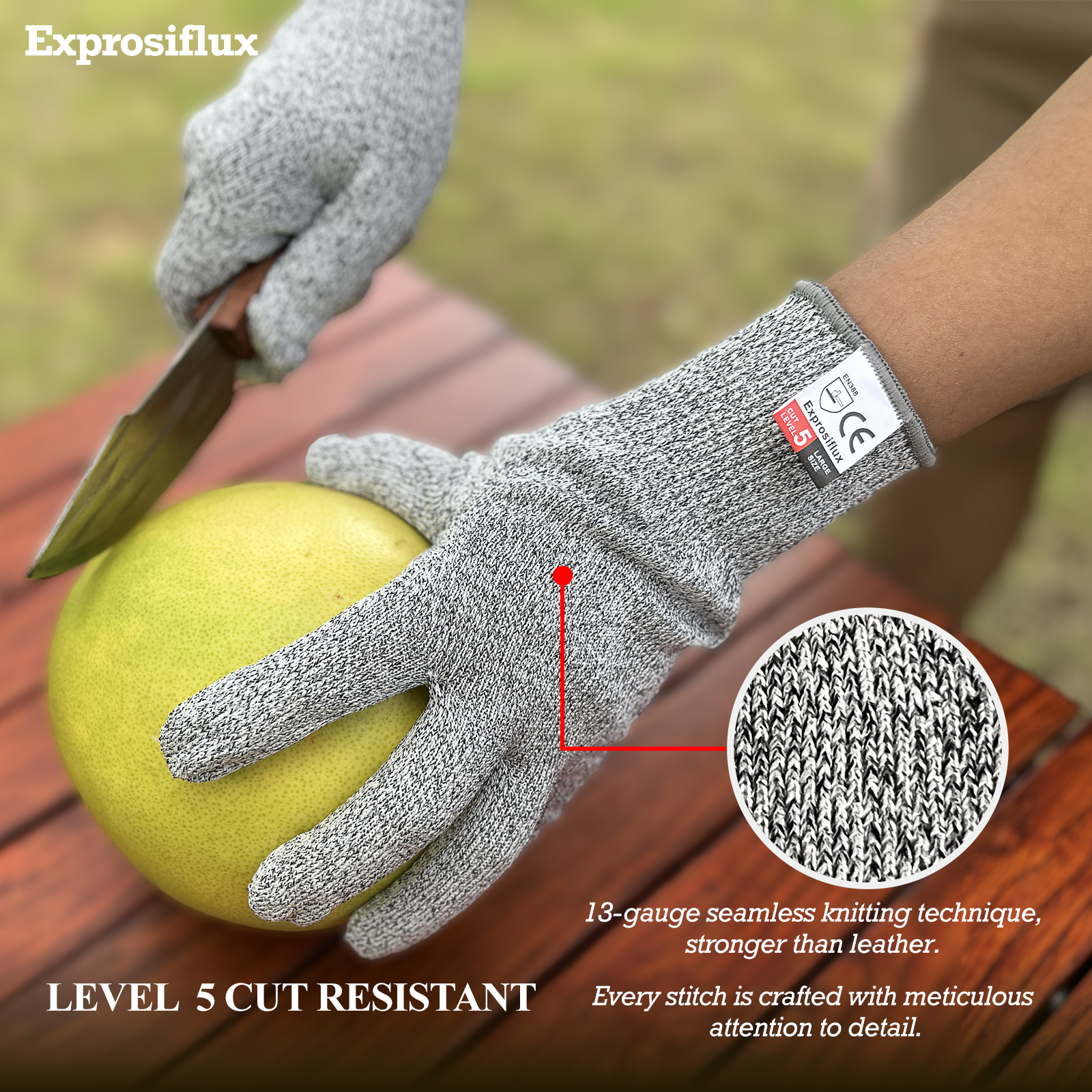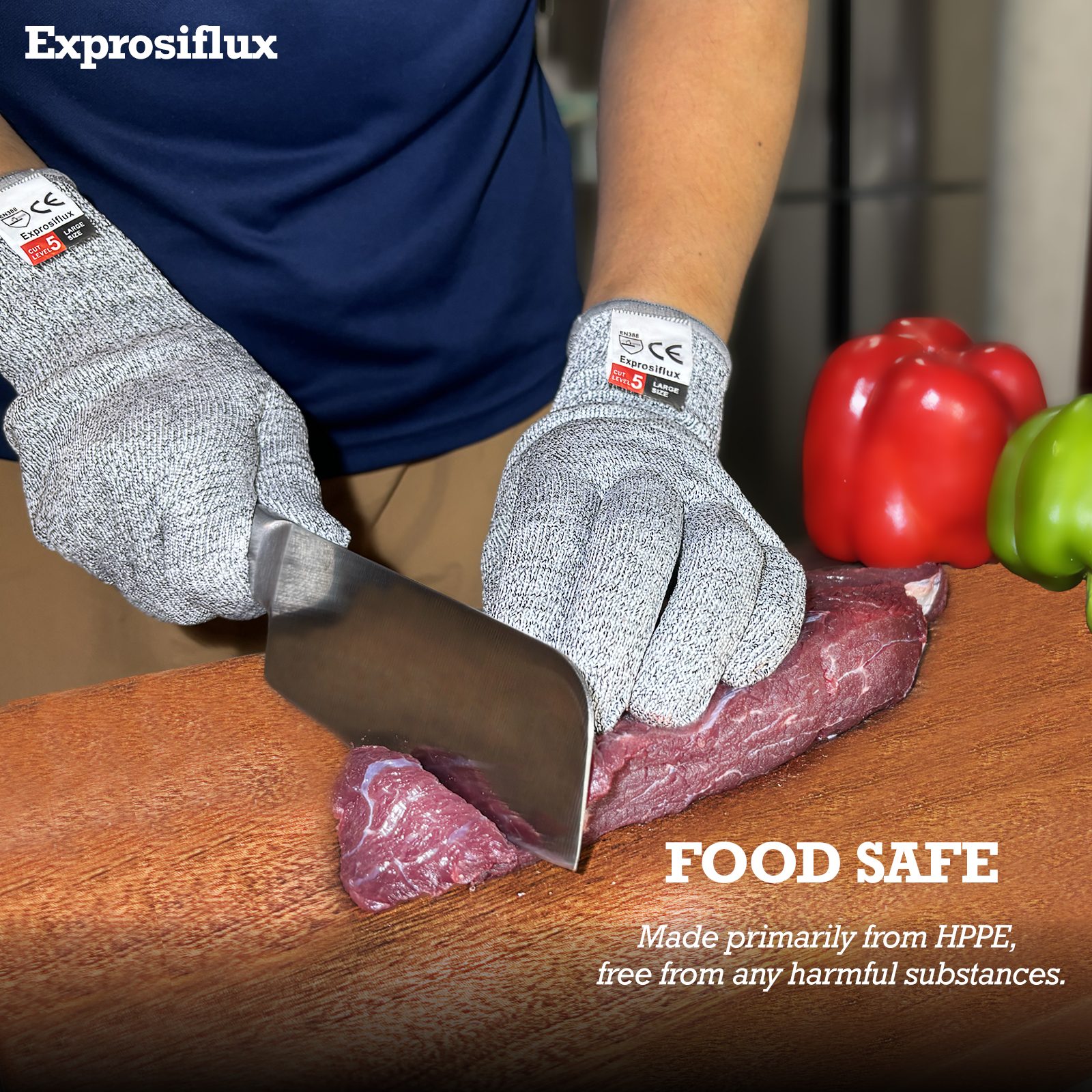 Safety: These cut resistant gloves, made from food-grade HPPE material, are certified with EN:388 - Level 5 protection. They safeguard your hands from cuts and abrasions, offering cut resistance superior to that of ordinary gloves.