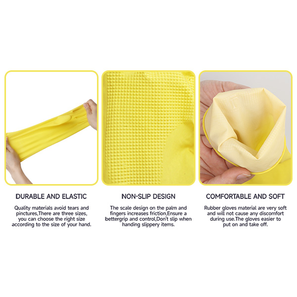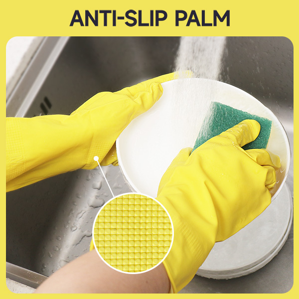 WATERPROOF AND NON-SLIP : The dotted surface of these reusable rubber cleaning gloves provides a firm grip, ensuring that dishes and kitchenware won't slip from your hands while washing with these rubber gloves.